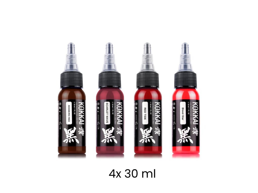 Crimson Core je výber štyroch silne pigmentovaných červených odtieňov z ponuky japonskej značky Kokkai. Skvele fungujú pre motívy, kde potrebuješ výraznosť, krvné podtóny, dramatickosť alebo štylizovaný kontrast k čiernej.