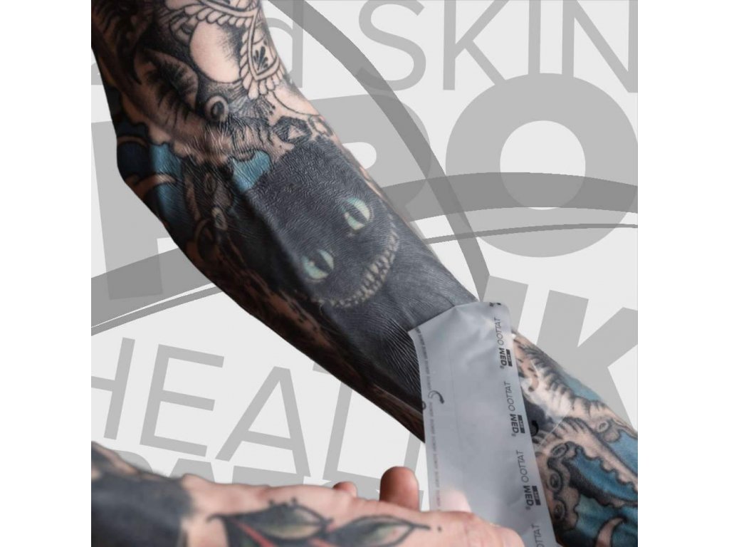 Náš produkt TattooMed Protection Patch z rady Pro ponúka optimálnu funkciu na podporu pokožky v tejto vyčerpávajúcej a riskantnej dobe. Ochranná náplasť ponúka vďaka svojej priedušnej tenkej membráne optimálnu klímu rany pre regeneráciu pokožky vašich zákazníkov. Je priedušná, vodeodolná a vydrží na pokožke až 5 dní. V prvých dňoch tak poskytnete svojmu zákazníkovi pocit bezpečia.