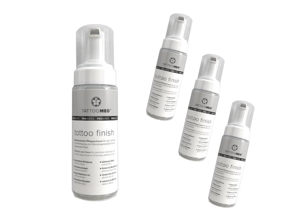 TattooMed Tattoo Finish je prvý roztok bez alkoholu na čistenie, dekontamináciu, zvlhčovanie a hojenie akútnych rán. Jedinečná kombinácia obsiahnutého polyhexanid-betaínového komplexu vedie k obzvlášť účinnému čisteniu čerstvo vytvoreného tetovania, znižuje výskyt baktérií a zabraňuje zápalom. 4