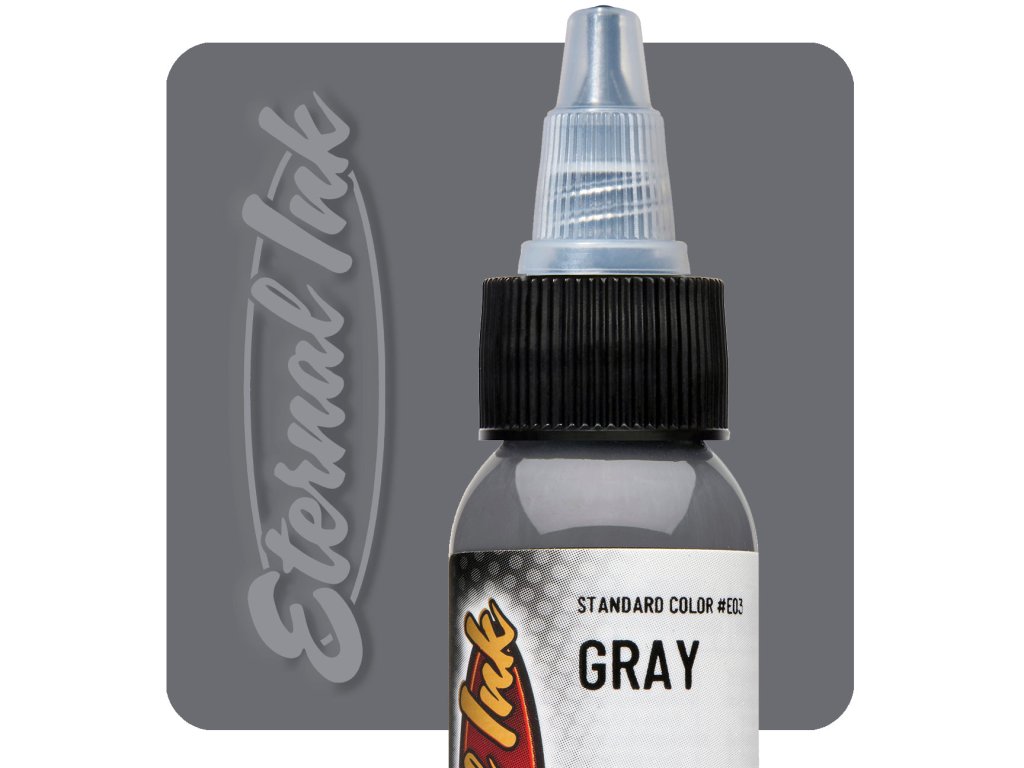 Eternal Ink 03 Gray je stredne sivý tón z tréningovej série Eternal, ktorá bola vytvorená pre realistické precvičovanie tetovacích techník bez aplikácie na živú pokožku. Farba má vyvážený pomer čierneho a bieleho pigmentu, čo umožňuje realistické výsledky aj pri práci na umelých povrchoch.