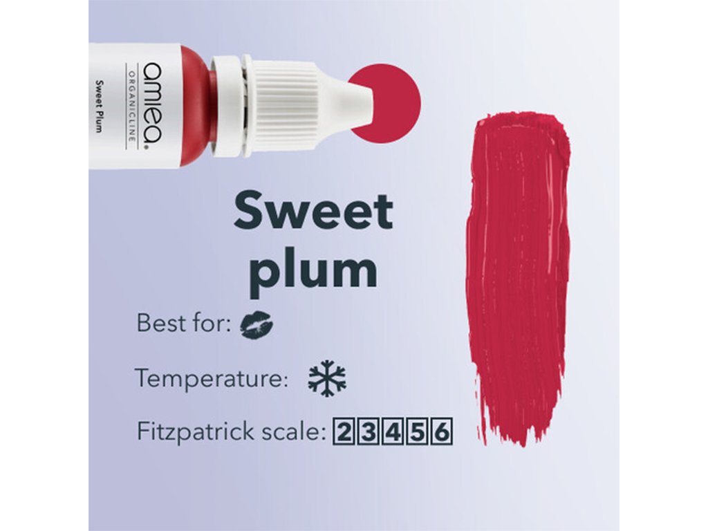 Amiea - Sweet Plum představuje tmavě červený odstín, pečlivě formulovaný tak, aby vašim rtům poskytl hloubku a výraznost. Při aplikaci je nezbytné dbát opatrnosti, abyste dosáhli dokonalého vyvážení, vyvarovali se příliš intenzivního vstupu barev a zabránili jakémukoli purpurovému. Jeho přizpůsobivost pro vytváření výrazných rtů a zároveň dbající na vyhýbání se purpurovému odstínu z něj činí vynikající volbu pro každého umělce PMU.