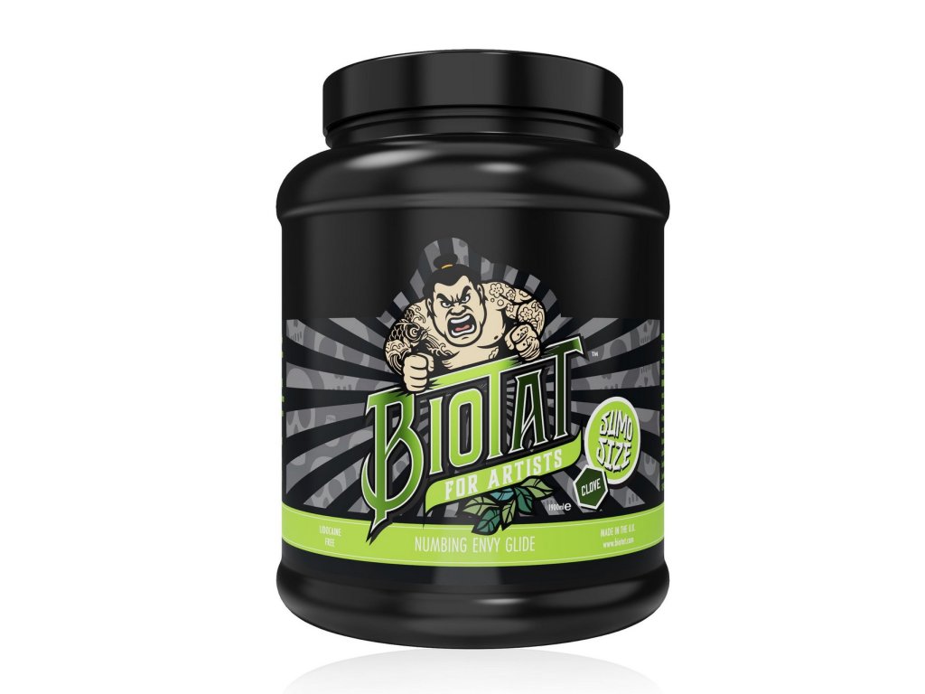 BIOTAT Tattoo Glide Envy je profesionálny znecitlivujúci pracovný gél určený na použitie počas tetovania. Vďaka prírodnej sile klinčekového oleja upokojuje pokožku, obmedzuje začervenanie a znižuje citlivosť v tetovanej oblasti. Konzistencia gélu kĺže po pokožke hladko, minimalizuje trenie a umožňuje tetovačovi tetovať s menšou potrebou stierania.
