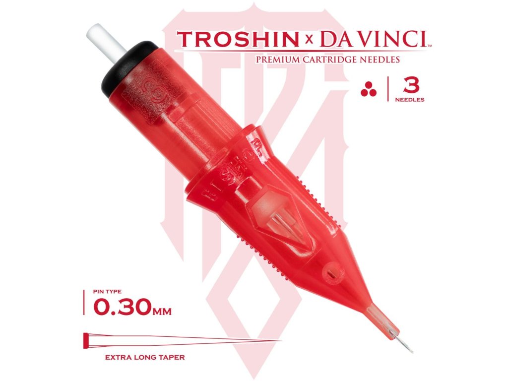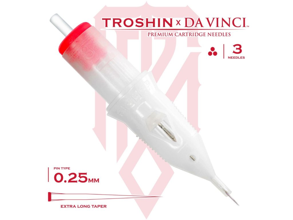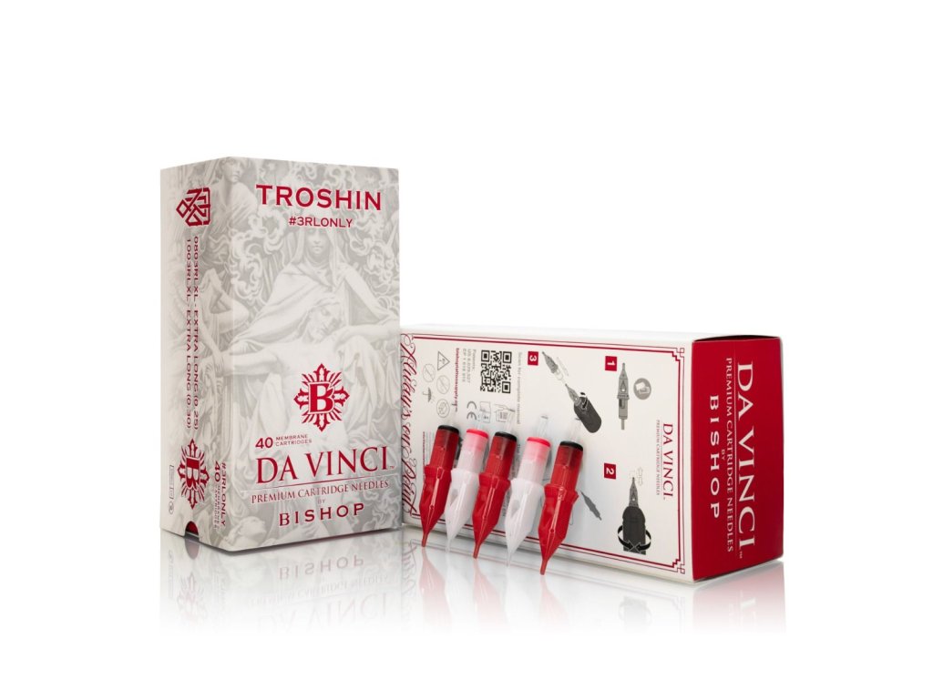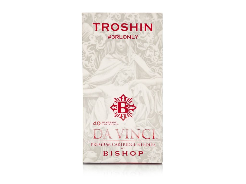 Cartridge Da Vinci V2 x Troshin #3RLONLY vznikli ako umelecká spolupráca medzi značkou Bishop a svetovo uznávaným tatérom Dmitrym Troshinom, známym svojím realistickým štýlom a filozofiou tetovania výhradne s konfiguráciou 3 Round Liner.