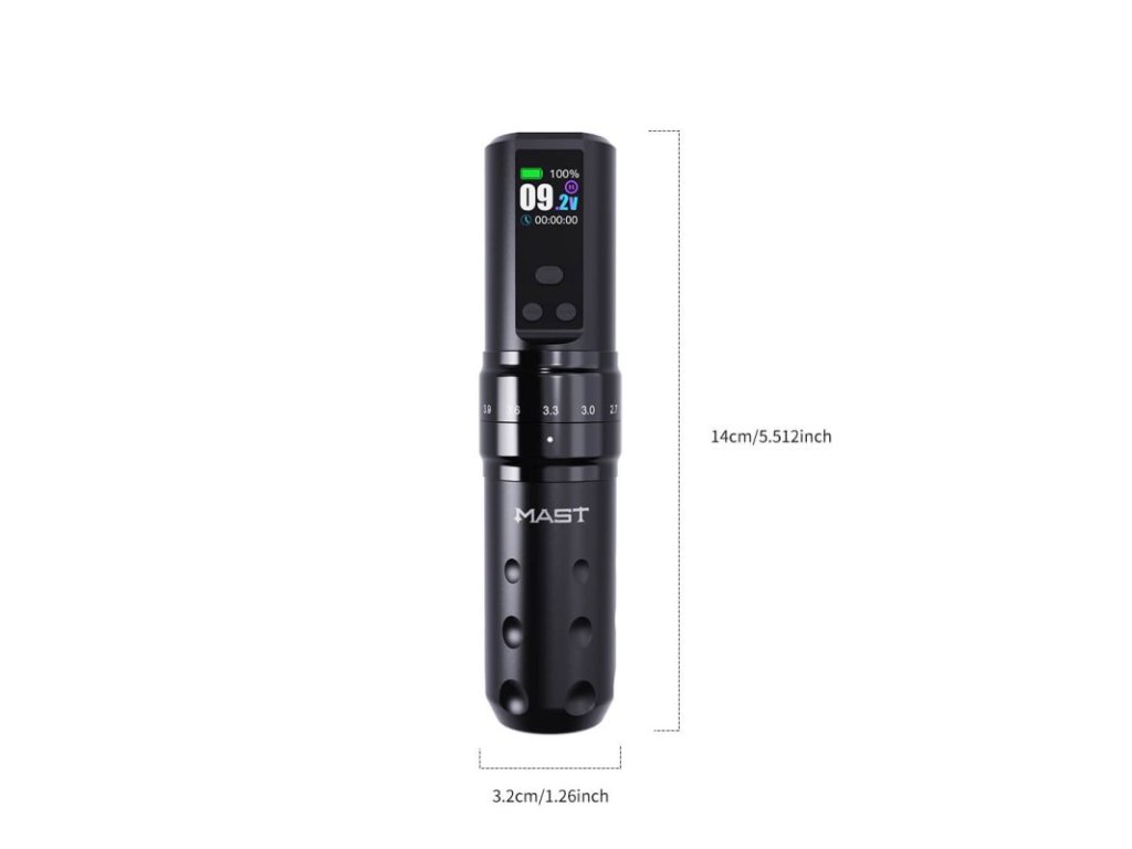 Mast Fold 2 Pro predstavuje modulárny bezdrôtový systém navrhnutý pre profesionálne použitie v tetovacích štúdiách. Strojček kombinuje mechanickú variabilitu, stabilný výkon a jednoduché ovládanie bez nutnosti externého zdroja.