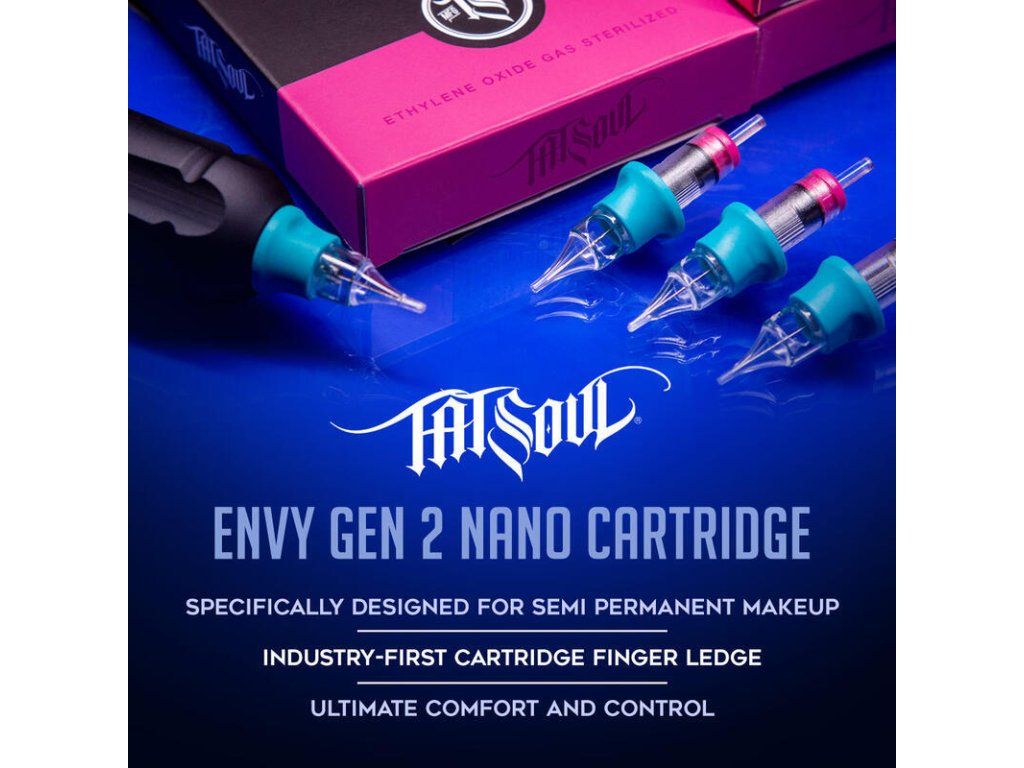 Envy Gen 2 Nano PMU cartridge Flat Single Stack Mag jednořadové rovné. Ihlice umiestnené v plochej rade. Ideálne na vytváranie obočia a púdrového obočia. Ideálne aj na ošetrenie pier. Vyvinuté z cartridgí Envy Gen 2, cartridge Envy Nano prinášajú nové konfigurácie. Špeciálne navrhnuté pre permanentný make-up vrátane mikropigmentácie pokožky hlavy a všetkej estetiky tváre. Kompatibilné so všetkými cartridge strojčekmi od kvalitných značiek, ako sú Cheyenne (Hawk), FK Irons, Microbeau a Bishop Rotary. Cartridge majú membránovú funkciu, ktorá neumožňuje spätný tok atramentu alebo krvi do vášho stroja alebo gripu, čo výrazne zvyšuje úroveň hygieny a skracuje váš čas strávený čistením a sterilizáciou - a čas sú peniaze... Envy Gen 2 Nano PMU kazety sú dodávané v krabičkách po 10 kusoch, každá kazeta je balená jednotlivo v blistri a je sterilizovaná EO plynom. Proces kvality Každá cartridge Envy Nano prechádza 30-bodovým procesom kontroly, než získa názov Envy. Tak sa môže pochváliť najvyšším štandardom QC procesu v odbore, môžete si byť istí, že cartridge Envy Nano budú vždy v maximálnej kvalite. Schválené umelcami Umelci podporujú inovácie TATSoul Envy pomocou spätnej väzby umelcov do všetkých návrhov produktov. Komfortné držanie Komfortný návlek na cartridge vám umožňuje väčšiu kontrolu a presnosť s možnosťou oprieť prst ďalej dole bližšie k ihle. Jemnejší detail Navrhnuté a vylepšené tak, aby prekračovalo súčasné štandardy kvality v priemysle estetiky tváre. Envy Nano Cartridges umožňujú umelcom SPMU vytvárať tie najlepšie línie a realistické ťahy vlasov. Balené po 10tich kusoch.Buďte prvý, kto napíše príspevok k tejto položke.