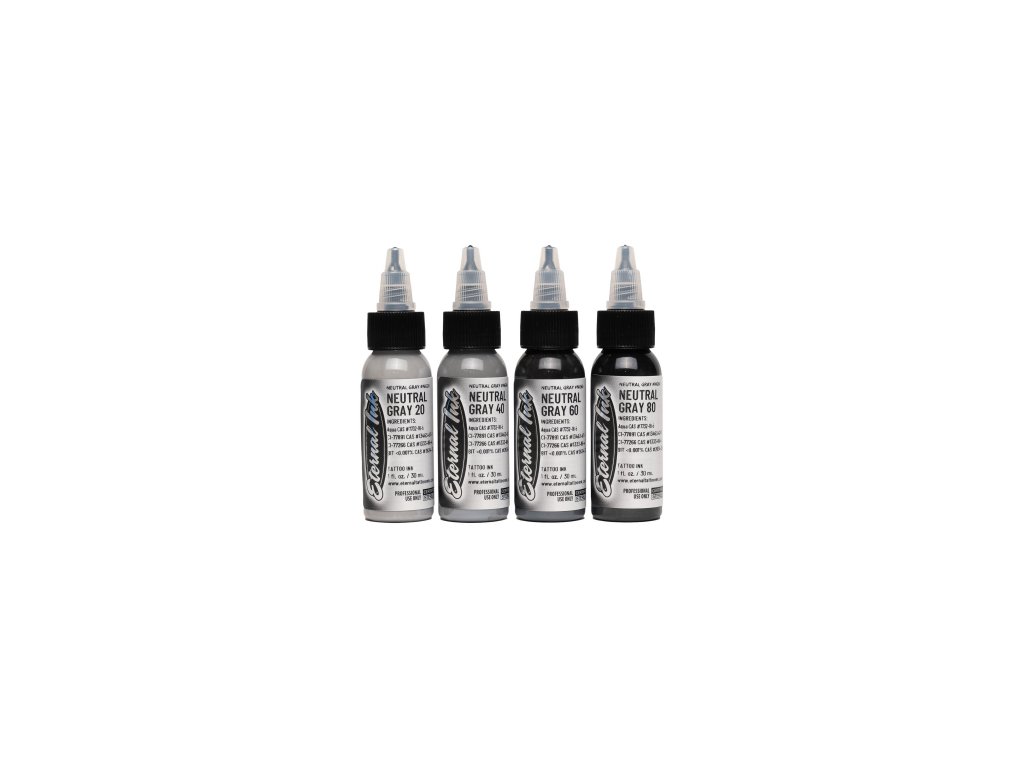 Predstavujeme nevyhnutný doplnok k farebnej palete každého umelca, sadu štyroch nepriehľadných neutrálne šedých atramentov! Pre čierno-sivého umelca, ktorý chce vytvoriť hladkú nepriehľadnú gradáciu, sú tieto štyri atramenty na hodnotovej stupnici rovnomerne rozmiestnené na 20 %, 40 %, 60 % a 80 % čiernej. Umelci pracujúci s farbami budú milovať neutrálne sivé na zmiernenie akejkoľvek farby bez toho, aby došlo k posunu vo farebnom odtieni. Pridanie tejto sady umožňuje umelcovi rozšíriť svoju farebnú paletu o širšiu škálu tónov a odtieňov.