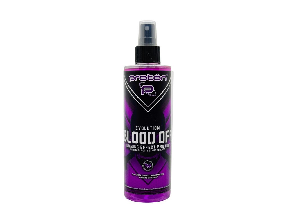 Proton Blood Off Pro Line je ideálnym spojencom pre profesionálne tetovanie. Tento špecializovaný sprej, vytvorený na zníženie krvácania a opuchu na konci sedenia, udržuje tetovanú oblasť čistú a pomáha uzatvárať póry, čím vytvára optimálne prostredie pre regeneráciu pokožky.