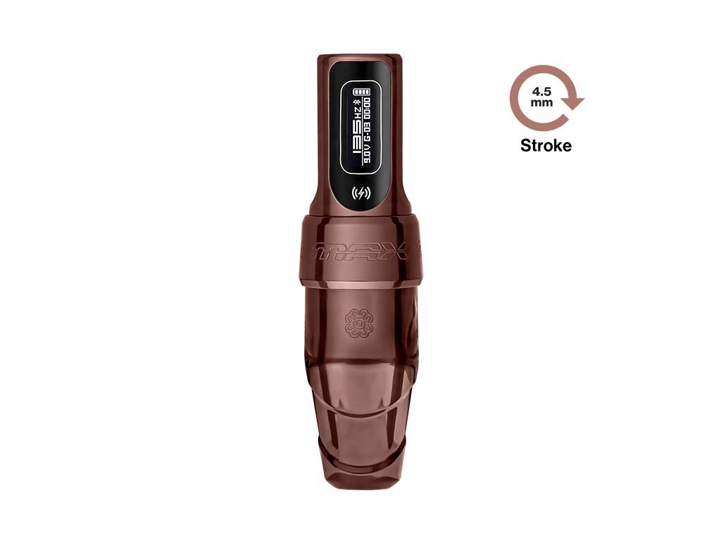 Flux S Max je vybavený novým digitálnym displejom, vstavaným menu s akumulátorom PowerBolt Il, ktorý umožňuje dokonalé ovládanie všetkých funkcií a nastavení stroja. PowerBolt II umožňuje umelcovi ľahko prechádzať možnosti ponuky, zapínať a upravovať Give, čítať výdrž batérie a personalizovať zobrazenie stroja výberom Hertz alebo Voltov a 0,1 alebo 0,5 krokoch nastavenia. Flux S Max je vybavený novou, najmodernejšou technológiou, ktorá sa naučí, ako radi pracujete, od typu atramentu, po špičku/ihlu a úroveň tlaku, ktorý aplikujete.