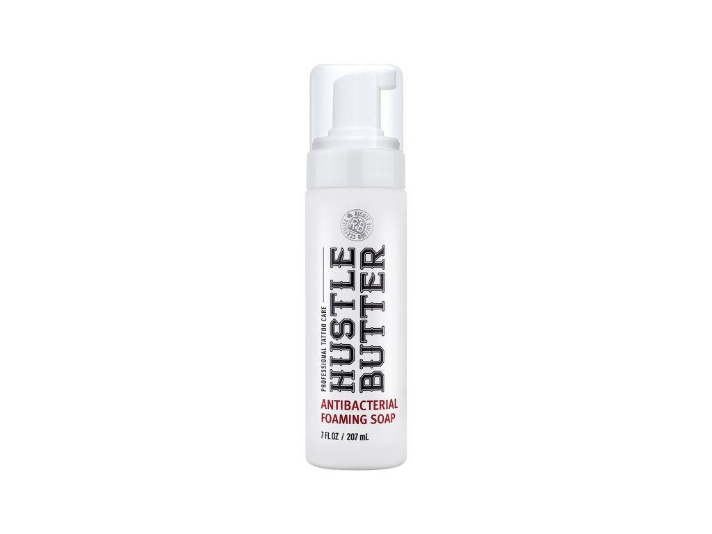 Hustle Bubbles je anitbakteriálne mydlo na čistenie pokožky pri tetovaní v hustej pene. Môžete použiť Hustle Bubbles Deluxe ako náhradu za zelené mydlo vďaka jej antibakteriálnym účinkom. Hustle Bubbles Deluxe znižuje množstvo baktérií na pokožke a zároveň ju zjemňuje, čistí a zvlhčuje. Už nemusíte nič mixovať - produkt je už namiešaný, v spreji s pumpičkou, takže nepotrebuje žiadne miešanie, stačí stlačiť a používať.... Hustle Bubbles Deluxe je prírodný, vegan-friendly produkt a skvele vonia rovnako ako Hustle Butter Hustle Bubbles Deluxe je balený v 207ml fľaštičke s pumpičkou buď ako samostatný sprej alebo v krabici po 12tich kusoch so zvýhodnenou cenou.