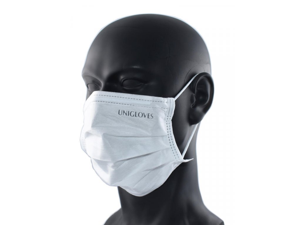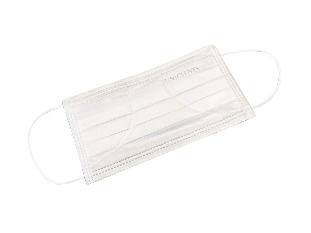 Certifikované biele rúška s gumičkou bez latexu a z materiálu šetrného k pokožke, 3-vrstvové prevedenie, spĺňajú najvyššie lekárske štandardy. Kvalitný výrobok od značky Unigloves.