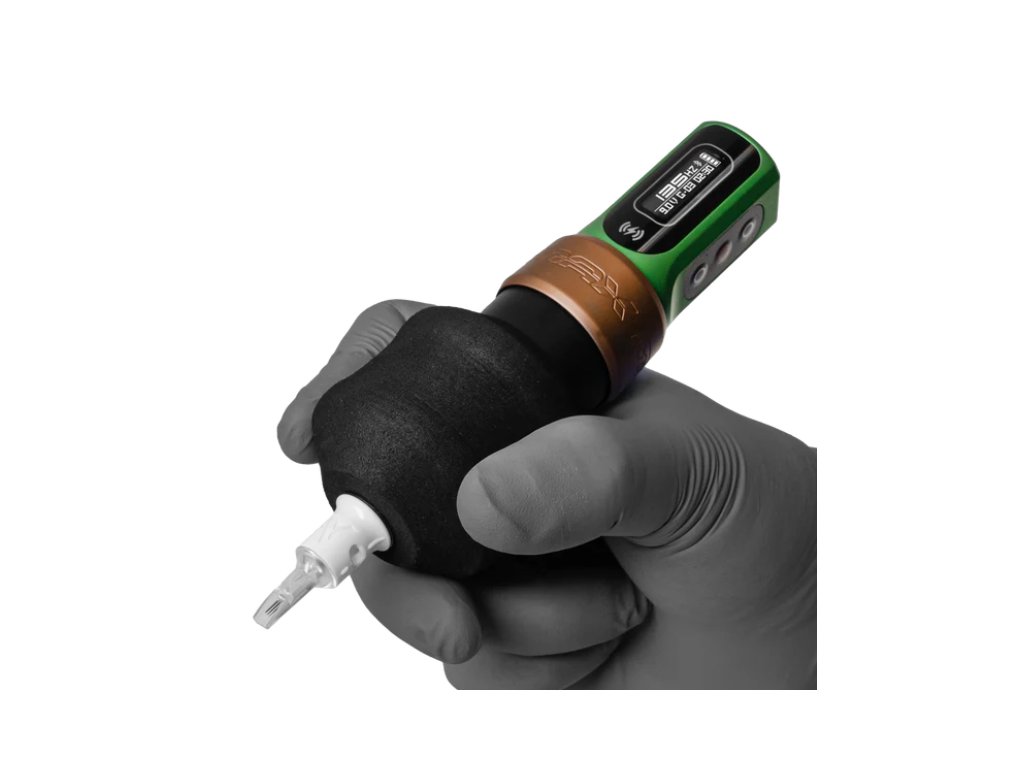 Jednorazový grip tetovacieho strojčeka sú hygienickou a pohodlnou alternatívou k vášmu štandardnému rukoväti strojčeka. Jednorazový grip pomáha predchádzať krížovej kontaminácii. Grip môžete vyhodiť v prípade spätného toku atramentu/tekutiny alebo od klienta ku klientovi. Umelci by mali svoje strojčeky stále riadne baliť, aby bola zaistená optimálna hygiena a čistota.