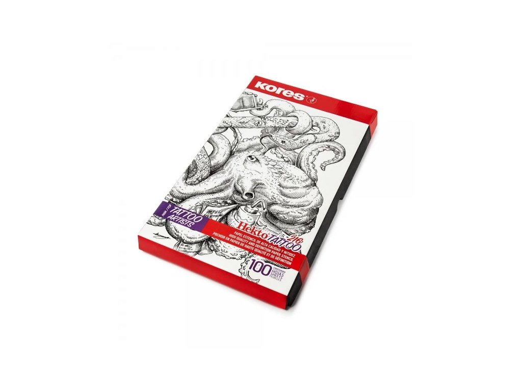 KORES THERMAL Stencil Hectografický papier je určený pre profesionálov, ktorí neupúšťajú od kvality svojej práce. Vďaka termálnej technológii tento papier zaručuje precízny prenos vzoru na kožu, čo je pre tetovanie kľúčové.