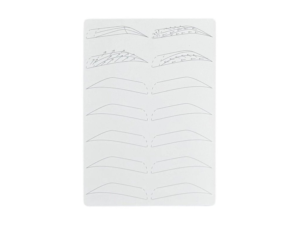 Laskin Permanent Latex Brows je cvičná umelá koža špeciálne navrhnutá pre permanentný make-up obočia. Vďaka predtlačeným šablónam obočia umožňuje precvičovať rôzne techniky – od základných ťahov cez bloky až po ombré tieňovanie a hlavičky.