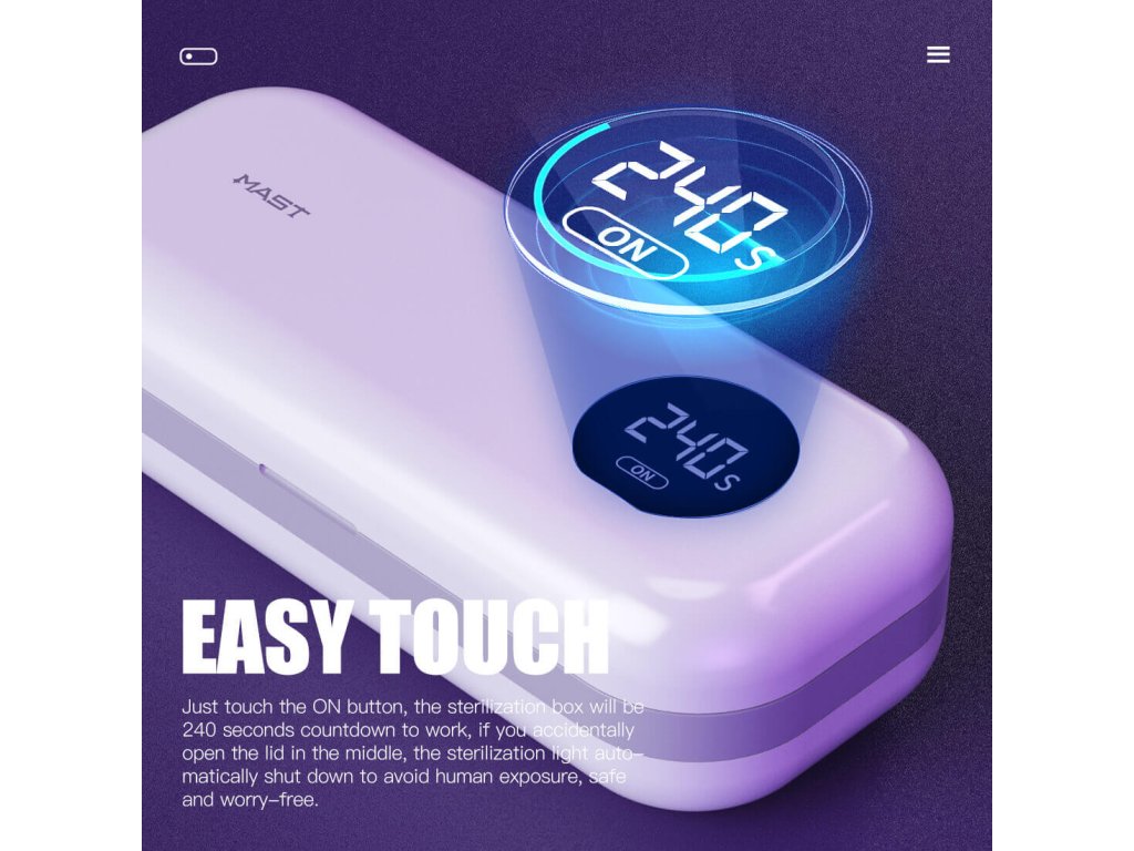 Tento kompaktný a prenosný sterilizačný box využíva pokročilú UV+UVC technológiu, ktorá eliminuje až 99,99 % baktérií, vírusov a ďalších mikroorganizmov počas iba 240 sekúnd.