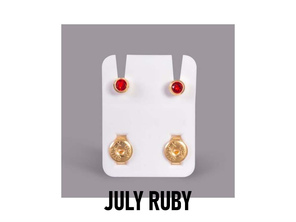 Piercing do uší Studex s farebným kryštálom v pozlátenom rámiku. K dispozícii v balení dvanástich párov.