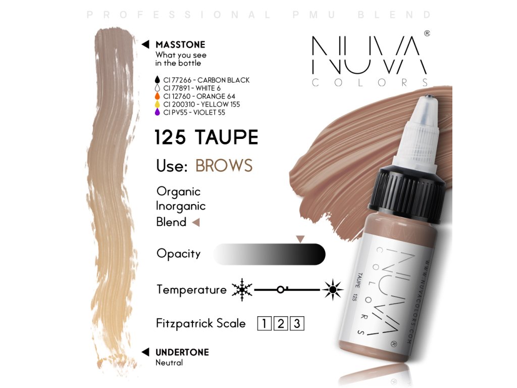 Pigmenty NUVA COLORS poskytujú sýte a dlhotrvajúce efekty. Vyberte si zo šiestich sád pigmentov, vybraných špeciálne pre rôzne oblasti pigmentácie, vrátane pier, obočia, očných viečok, dvorcov, jaziev a pokožky hlavy. NUVA COLORS zaistí zakaždým hladkú a jednotnú aplikáciu.