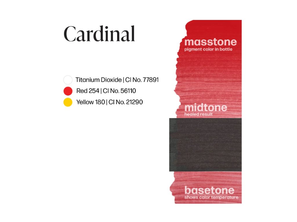 Stredne oranžovo červený pigment na pery s nízkou krycou schopnosťou - Brilantná, pravá červená.