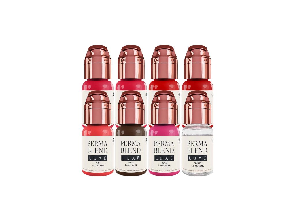 Perma Blend Luxe Enhance Set obsahuje 8 pigmentov pre permanentný make-up, ktoré sú v súlade s najnovšími predpismi REACH. Sada obsahuje sedem základných farieb - vrátane tmavého zemitého odtieňa Haze, ktorý dobre funguje ako modifikátor – plus riedidlo Adjust pre úpravy.