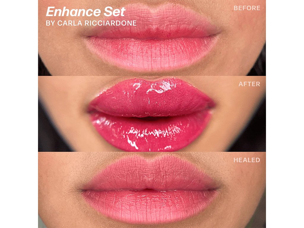 Predstavujeme Enhance Set od Pro-Team Artist, majiteľky Sculpted Studio - Carla Ricciardone. Objavte prevratný prístup k práci s teplými a svetlými perami alebo ho použite ako sekundárny krok pre neutralizované pery. Táto kolekcia atramentov vylepšuje prirodzenú farbu vašich klientov pomocou presného miešania farieb a odborného zloženia.