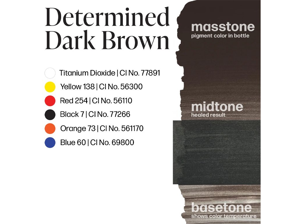Determined Dark Brown - Najtmavšia farba areoly s neutrálnym mäsovým tónom a mierne chladným podtónom a hojivosťou. Je najlepší na poskytnutie tmavej hĺbky farby potrebnej pre klientky s vysokým obsahom melanínu.