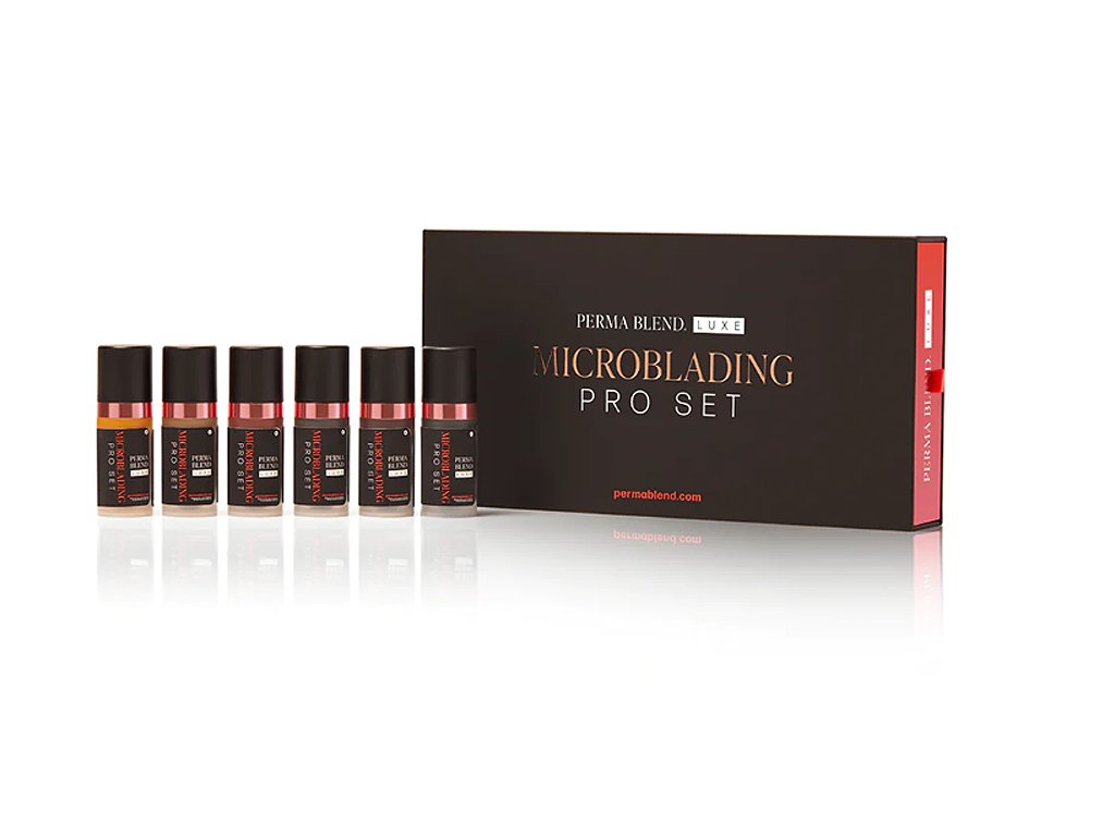 Microblading Pro Set od Perma Blend Luxe je kolekcia prémiových pigmentov pre ošetrenie microbladingom obočia - hybridné pigmenty
