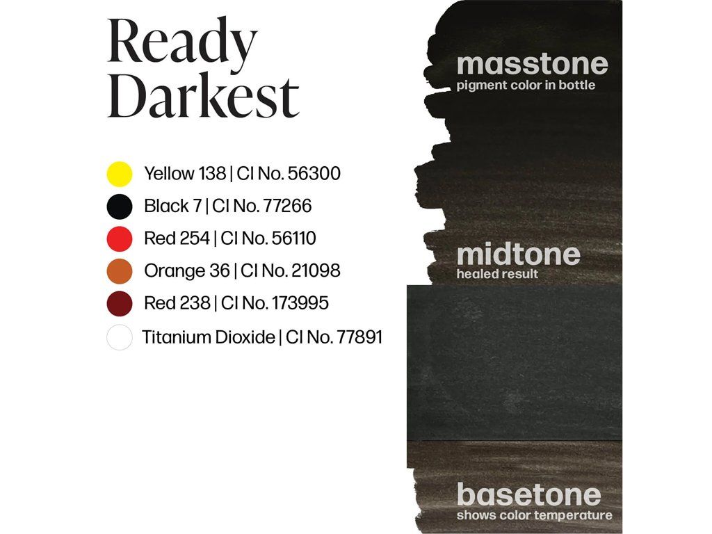 O odtieň tmavší ako Ready Dark. Táto formulácia je jednou z neutrálnejších vyrábaných tmavo hnedých farieb. Dobre sa mieša s Ready Medium a Ready Dark pre farebnú všestrannosť a poskytuje bohatý kontrast s tmavšou pokožkou bohatou na melanín. Možno použiť aj ako linku na oči.
