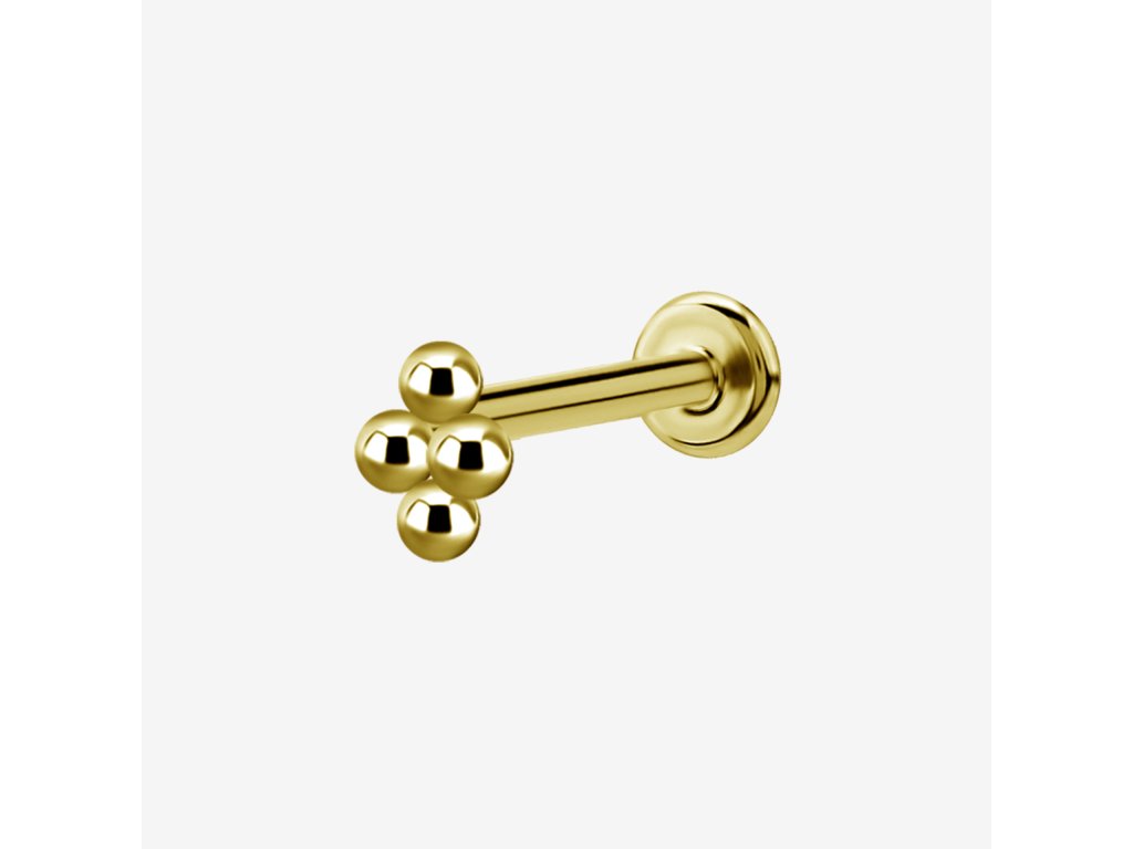 Tento labret je zakončený štyrmi drobnými guličkami, ktoré vytvárajú netradičný a pútavý efekt. Šperk sa hodí pre zákazníkov, ktorí chcú niečo výraznejšie ako klasický labret.