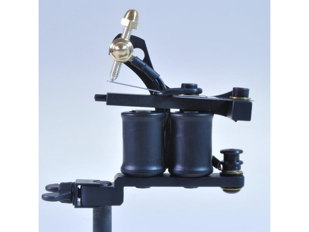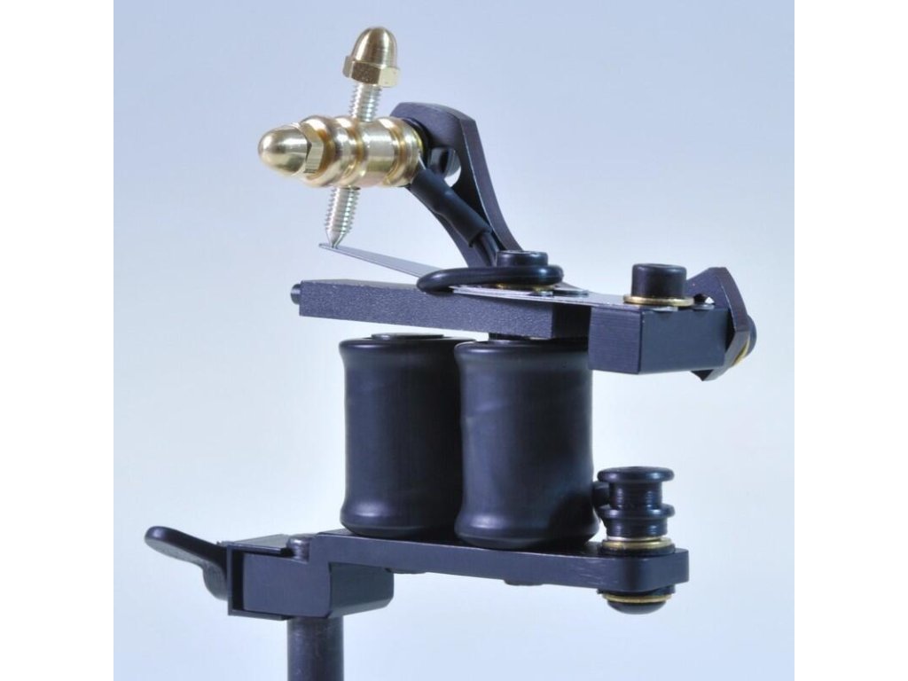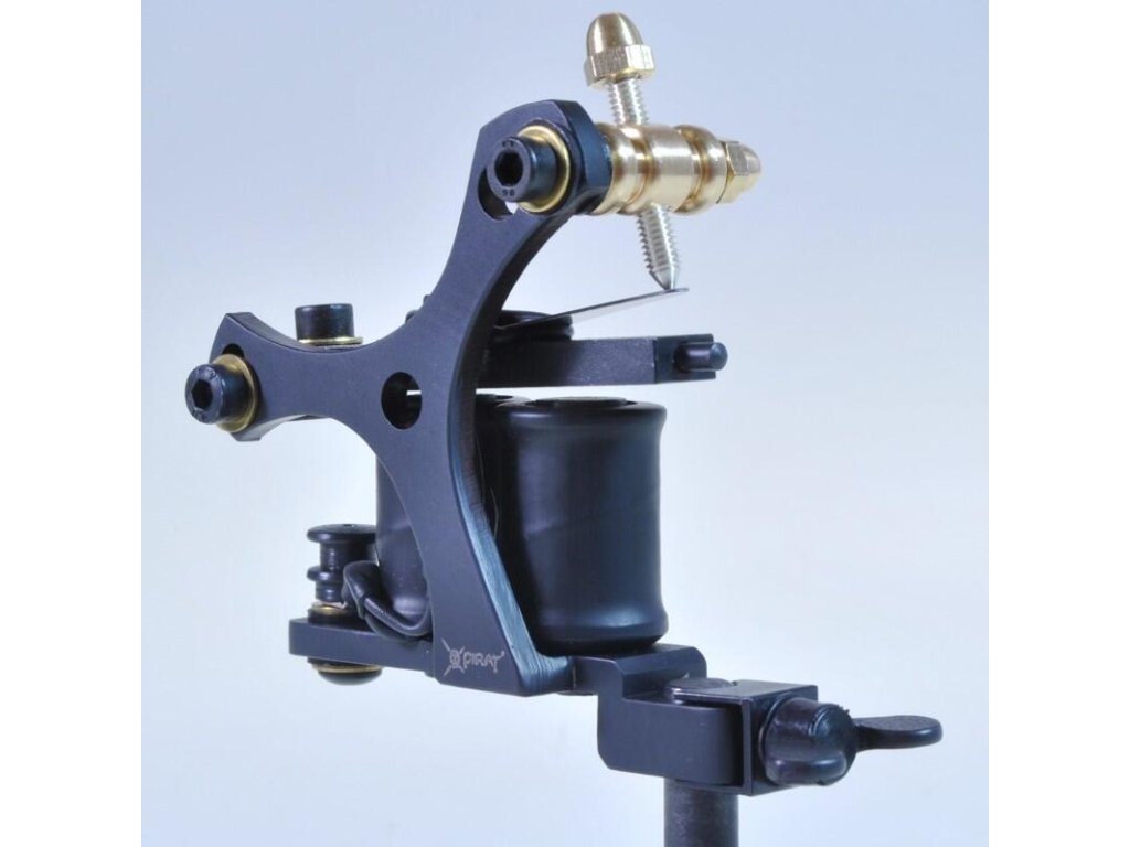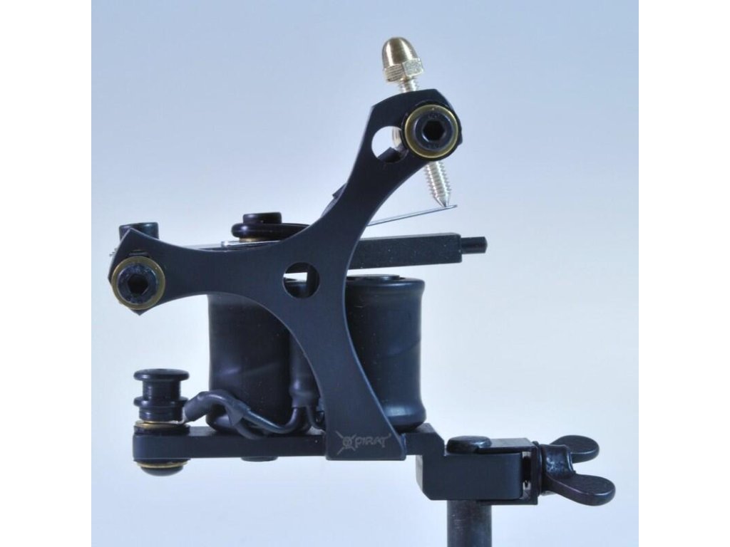 Menší tieňovací tetovací strojček, ideálny na linkovanie. Vylepšená variácia na legendárny prelomový model Pirat Tattoo Machines - Trinity. Železný rám v čiernej úprave.