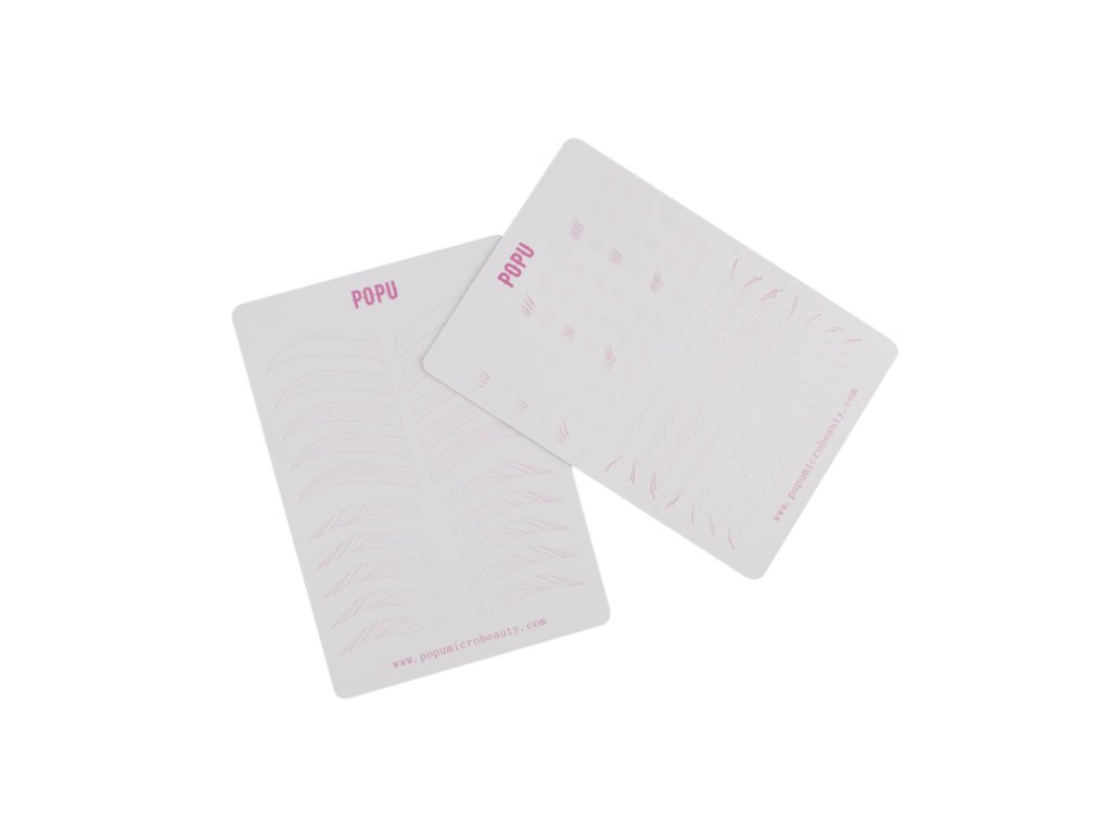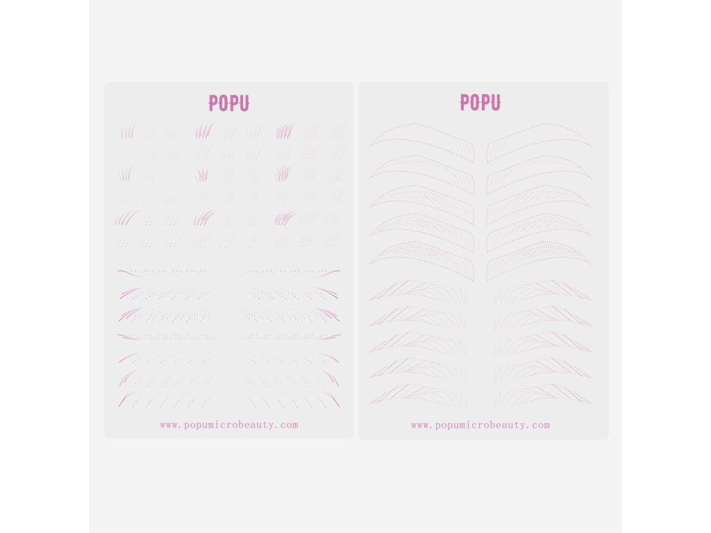 Tréningová umelá koža POPU je vytvorená pre PMU artistov, ktorí chcú zdokonaliť techniku bez práce na skutočnej pokožke. Každý list je obojstranný a obsahuje presné predtlačené tvary obočia, hairstrokes a nano strokes, ktoré pomáhajú pri nácviku rovnomernosti, tlaku ruky a presnej hĺbky vpichu.