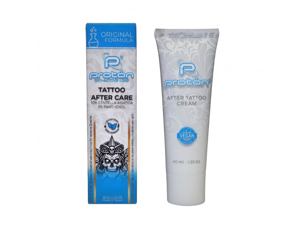 Proton Tattoo After Care Original Formula je originálny prípravok, ktorý znamenal prelom v profesionálnej starostlivosti o pokožku po tetovaní. Bol vyvinutý v Španielsku počas viac ako štyroch rokov výskumu vo vlastných laboratórnych zariadeniach spoločnosti Proton. Tento krém je spojením vedeckého prístupu a skúseností tetovacích umelcov s cieľom zabezpečiť vynikajúcu regeneráciu pokožky po tetovaní.