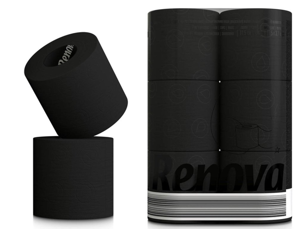 6 roliek toaletného papiera Renova Label čierny 3-vrstvový (celkom 840 útržkov)