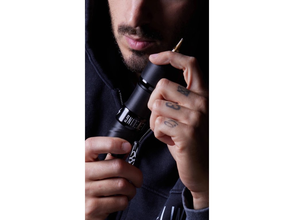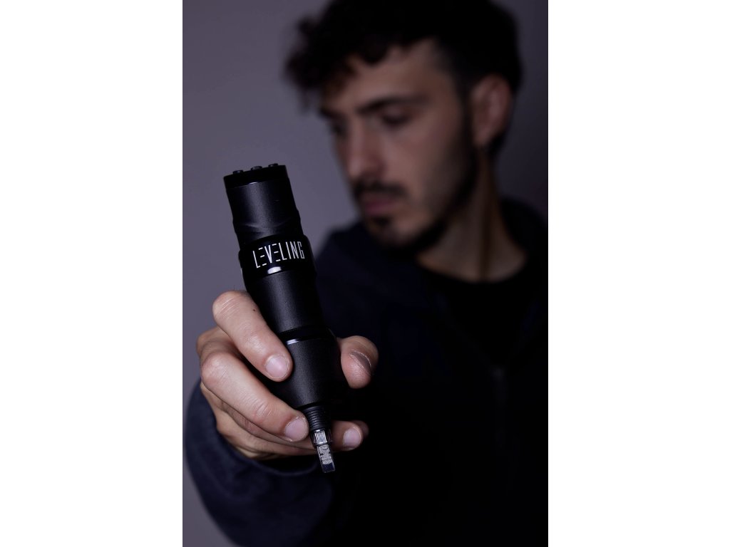 Sunskin LEVELING Wireless je bezdrôtová verzia modelu LEVELING, navrhnutá pre tatérov, ktorí vyžadujú plnú mobilitu bez kompromisov v kontrole, výkone a technickej presnosti. Konštrukcia strojčeka vychádza z osvedčenej platformy LEVELING a rozširuje ju o integrovaný batériový modul s dlhou výdržou. Zdvih 3,8 mm poskytuje vyvážený pracovný charakter vhodný na linkovanie, tieňovanie aj výplne. Vďaka motoru Faulhaber ponúka strojček konzistentný chod v celom odporúčanom napäťovom rozsahu, a to aj pri dlhších sedeniach bez poklesu výkonu. Telo strojčeka je vyrobené z hliníkovej zliatiny Ergal 7075 s povrchovou úpravou Onyx, čo zaisťuje vysokú mechanickú odolnosť, nízku hmotnosť a dlhú životnosť. Vnútorné komponenty z kombinácie ocele, nerezovej ocele, PEEK a titánu minimalizujú opotrebenie a zaisťujú dlhodobo stabilnú prevádzku. Bezdrôtové prevedenie eliminuje nutnosť napájacieho kábla a umožňuje voľnejší pohyb pri práci, čo je výhodné najmä pri dlhých sedeniach, konvenciách alebo mobilnom tetovaní. Video-promo Technické špecifikácie strojčeka Dĺžka: 137 mm Priemer úchopu: 40 mm Hmotnosť: 169 g Zdvih: 3,8 mm Motor Typ: Faulhaber Menovité napätie: 6 V Odporúčané napätie: 6,5 až 10 V Odporúčané napätie podľa výrobcu Luigi: 6,8 až 7,7 V Maximálne Ergal 7075 Vnútorné komponenty: Ergal 7075, oceľ, nerezová oceľ, PEEK, titán Batéria Napäťový rozsah: 4 V až 12 V Kapacita: 1500 mAh Výdrž: až 7 h prevádzky Použitie Strojček je kompatibilný s bežnými cartridge systémami.