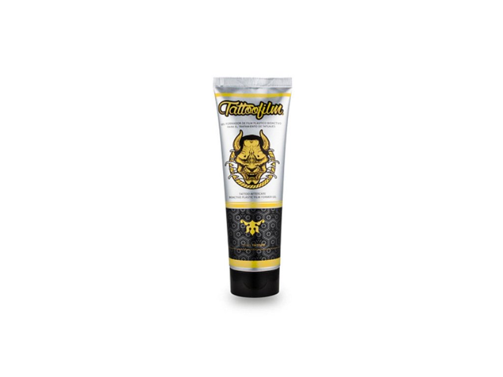 Bioaktívny gél tvoriaci plastový film pre starostlivosť a ochranu nedávno tetovanej pokožky.