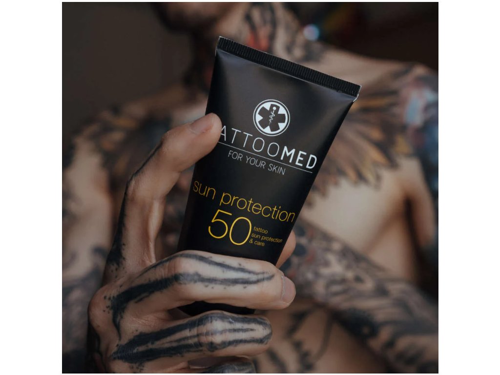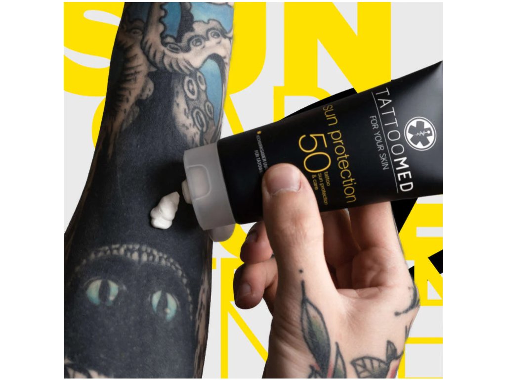 Pred opaľovaním (či už v soláriu alebo vonku) by ste mali pokožku chrániť krémom s vhodným ochranným faktorom. Pre oblasti tetovanej kože, ktoré nie sú zakryté odevom, sa oplatí ochrana pred slnkom aj v zime. S krémom TattooMed Sun Protection 50 môžete svoju tetovanú pokožku chrániť a príjemne sa o ňu starať, keď je slnko obzvlášť silné alebo keď plánujete deň na pláži či vo vonkajšom bazéne. Farby tak zostávajú jasné a pokožka je vďaka rýchlemu vstrebávaniu hladivo jemná a príjemná, nelepí sa ako u mnohých iných krémov.