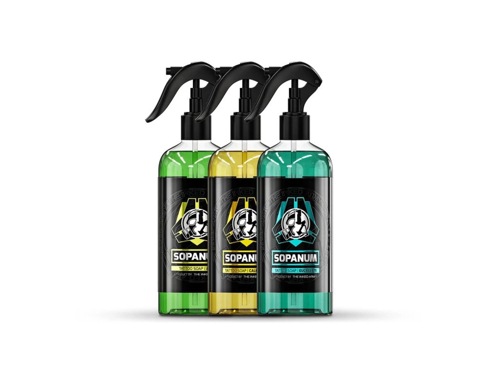 Mydlový sprej SOPANUM Tattoo Spray od The Inked Army je pripravený na použitie a dodáva sa v 3 rôznych vôňach:
