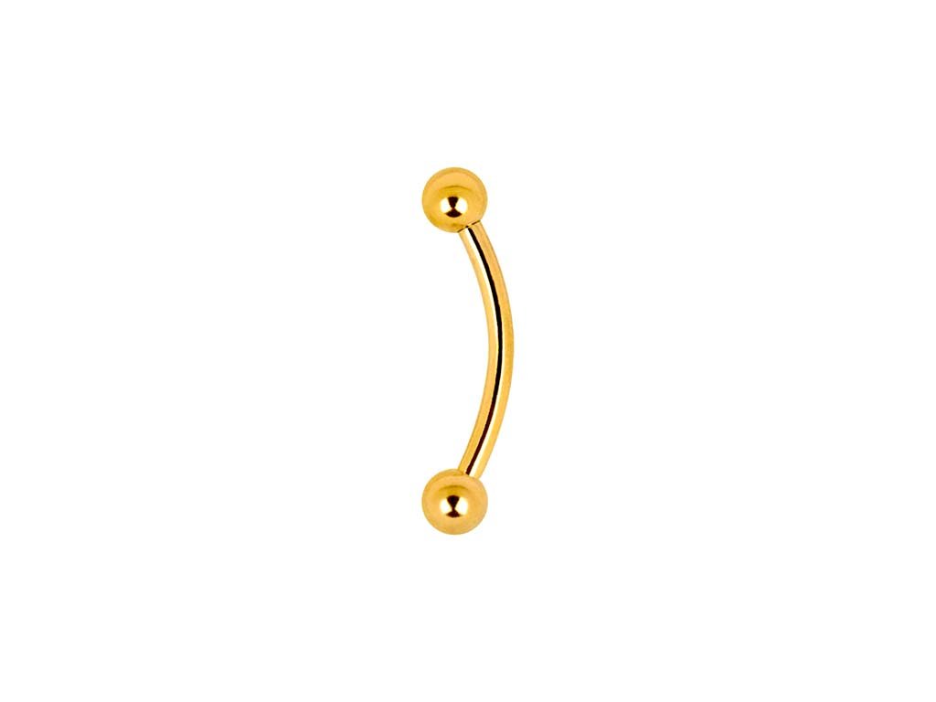 Wildcat Mini Banana Titan Zirconline má na koncoch vysoko presné závity. Tento šperk má decentný vzhľad a krásny zlatý tón. Kus je hrubý 1,2 mm, dlhý 12 mm a guličky majú priemer 4 mm. Je veľmi univerzálny, a preto ho možno použiť na brucho, uši, obočie alebo aj na intímne partie.