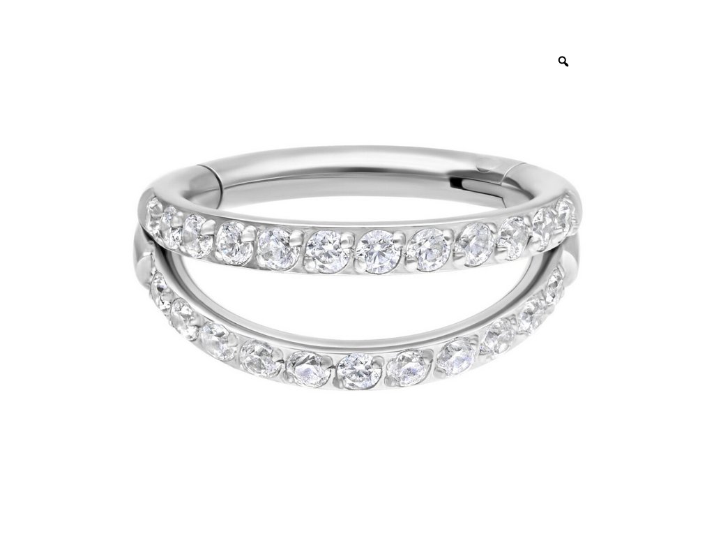Vďaka zacvakávaciemu mechanizmu sa prsteň ľahko nasadzuje a sníma, takže si ho môžete vymeniť sami bez pomoci. Dvojitá línia kryštálov dodáva šperku výrazný a zároveň elegantný vzhľad.